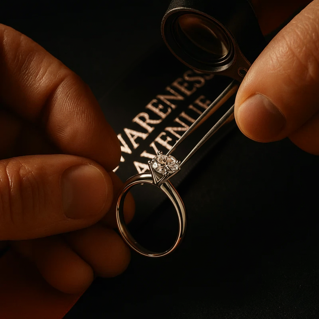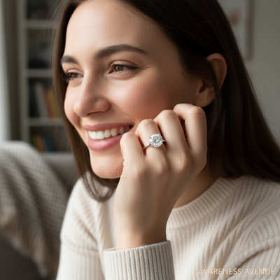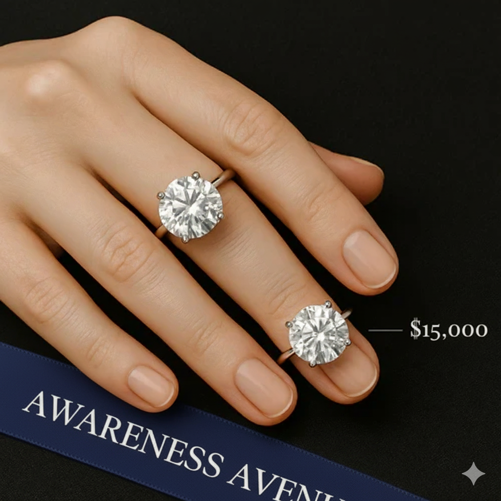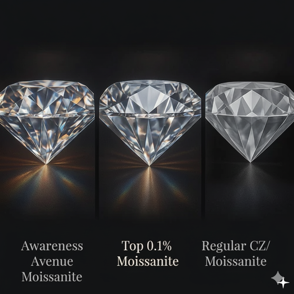 AvenueGem™ is Awareness Avenue's proprietary name for our premium moissanite stones, selected from the top tier of lab-grown moissanite specifically for their exceptional quality and diamond-like appearance.