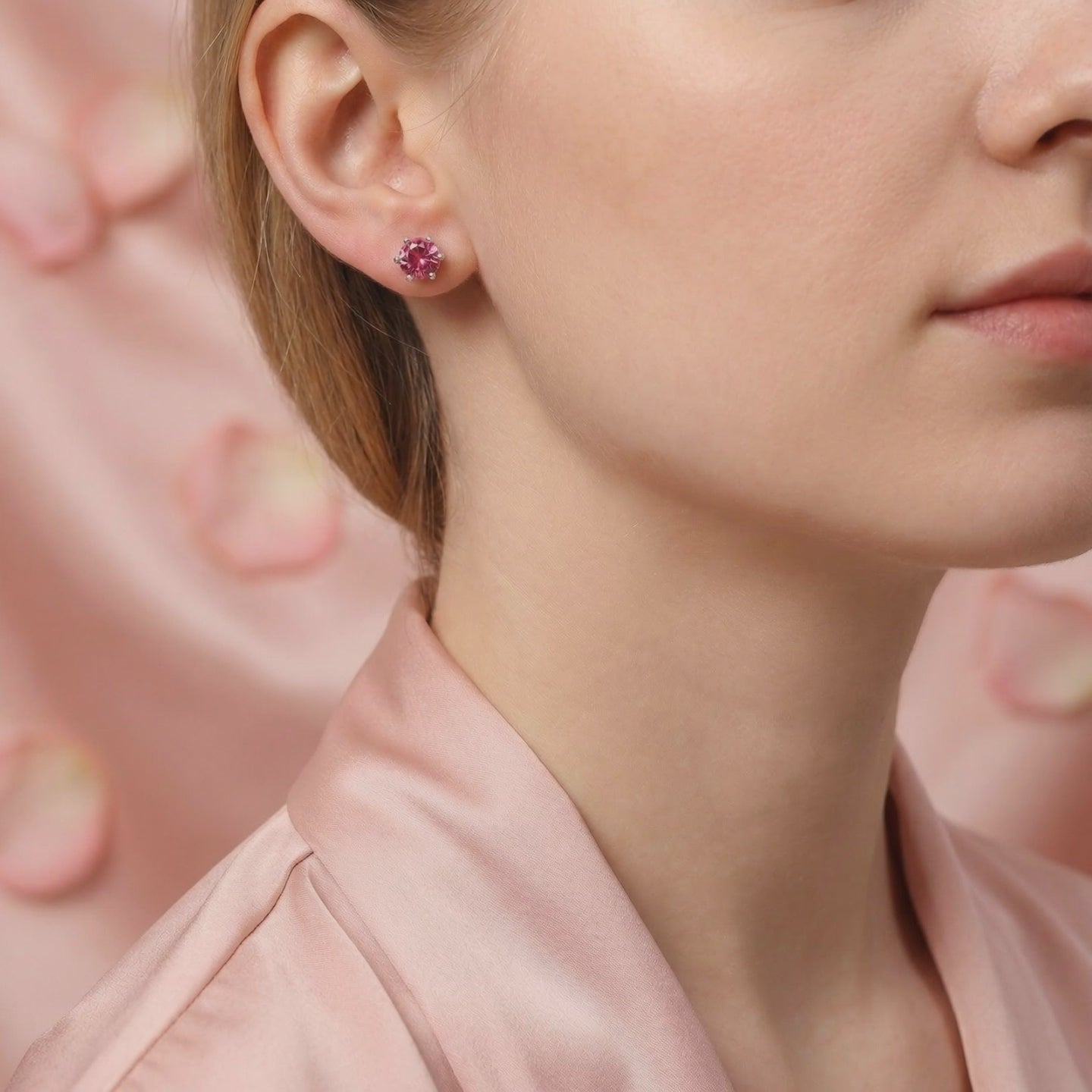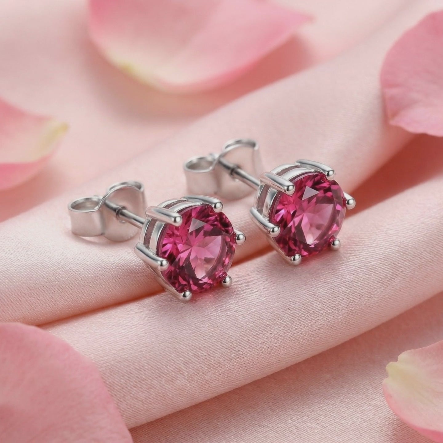 Nature rarely delivers the perfect shade of pink consistently, so we engineered it. These stud earrings feature Simulated Pink Tourmaline, color-calibrated to match the rare raspberry brilliance of museum-grade gems. Each 6.5mm round stone is precision-cut from A5 Grade material, ensuring edge-to-edge clarity and maximum light return without the inclusions found in mined stones.