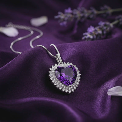 Capturing the deep, velvety violet hues of twilight, The Amalia Heart Pendant is a declaration of regal elegance. This breathtaking necklace centers on a massive 100% natural amethyst, precision-cut into a romantic Heart shape that spans an impressive 25mm. Sacrificing rough material to ensure edge-to-edge brilliance, the stone eliminates windowing and radiates a deep, saturated purple fire that commands attention from across the room.