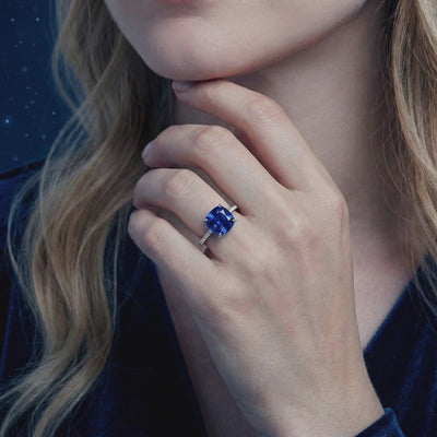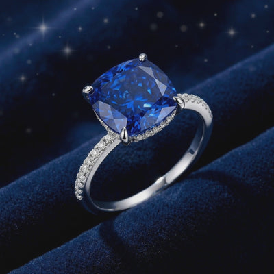 Mined sapphires often contain inclusions that dull their natural fire. This September birthstone ring features a high-performance Simulated Sapphire, color-calibrated to achieve the velvety saturation of a museum-grade royal blue gem. Precision-cut in a classic cushion shape, it is engineered for maximum light return and flawless clarity.