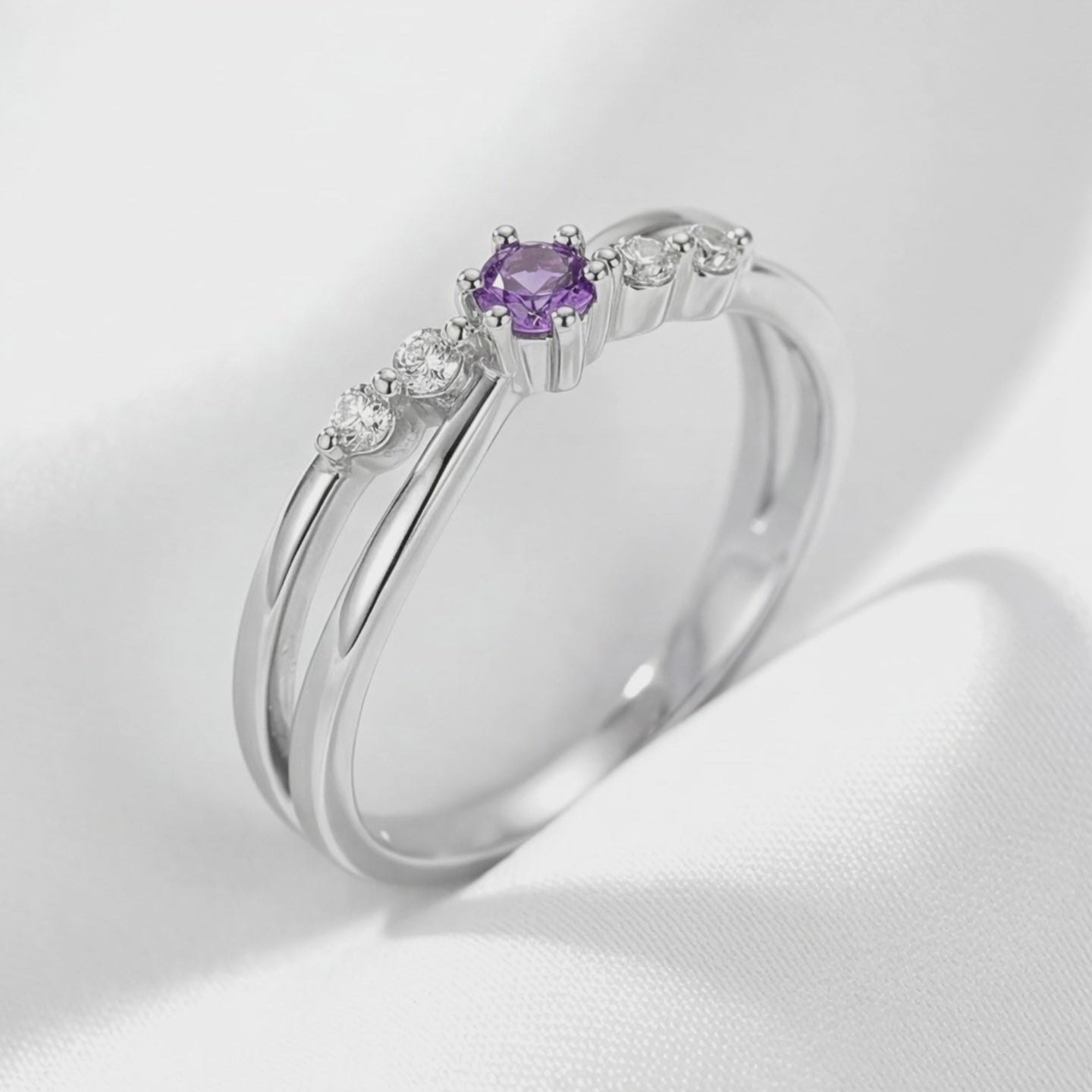 Nature is often inconsistent, but engineering is precise. This ring features a center Simulated Amethyst, color-calibrated to achieve the deep, museum-grade purple that mined stones rarely reach without heavy inclusions. Every stone is selected for VVS-grade clarity and high-performance light return.