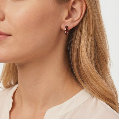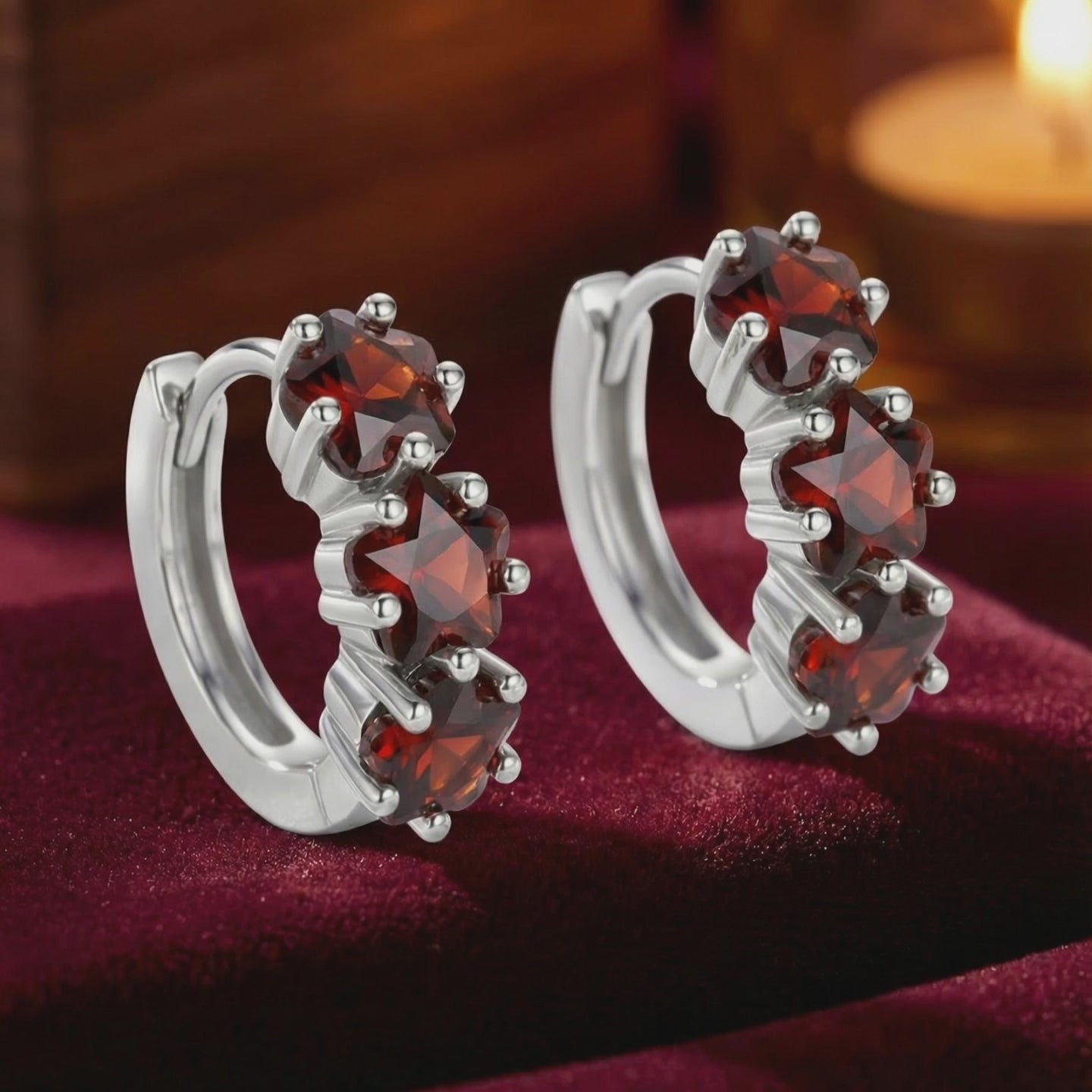Nature rarely produces the deep, uniform red found in museum-grade garnet. We engineered it. These star-cut huggie earrings feature three precision-calibrated simulated garnets, designed to deliver the exact visual profile of the top 1% of mined stones without the mining tax or environmental impact.