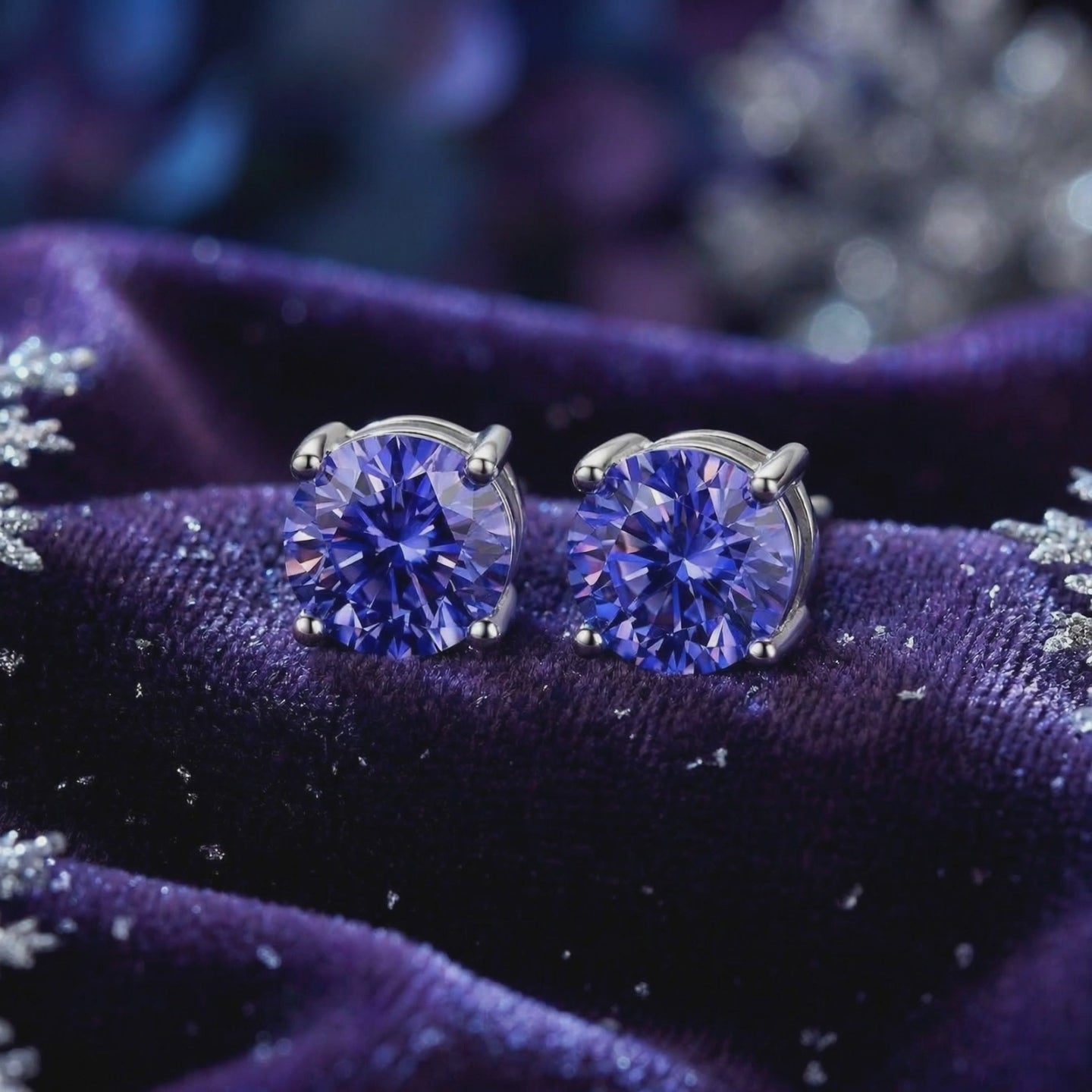 Mined tanzanite is notorious for its rarity and its flaws, often driving prices into the thousands for a single pair of stud earrings. We engineered a better way. These earrings feature Simulated Tanzanite, color-calibrated to achieve the exact deep blue-violet hue with trichroic shifting highlights found in museum-grade stones. Every stone is precision-cut for maximum light return, ensuring a level of saturation that nature rarely delivers consistently.