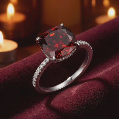 Mined garnets often struggle with brown undertones or inconsistent clarity. This is Simulated Garnet, color-calibrated to achieve the museum-grade deep red profile. Each cushion-cut stone is precision-engineered from A5 Grade material to maximize light return and refractive performance.