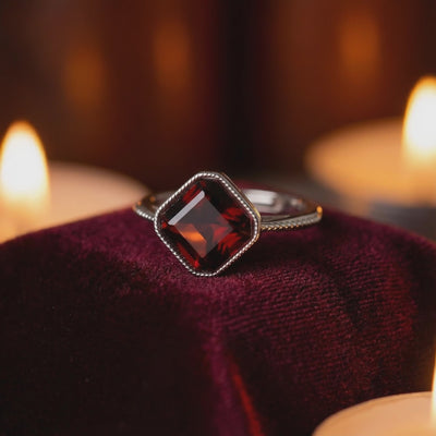 Nature rarely delivers perfection, but engineering does. This cushion-cut ring features a Simulated Garnet, color-calibrated to achieve the ideal deep red saturation that defines the January birthstone. Precision-cut from A5 Grade material, the center stone offers flawless clarity and maximum light return without the cloudiness often found in mined gems.