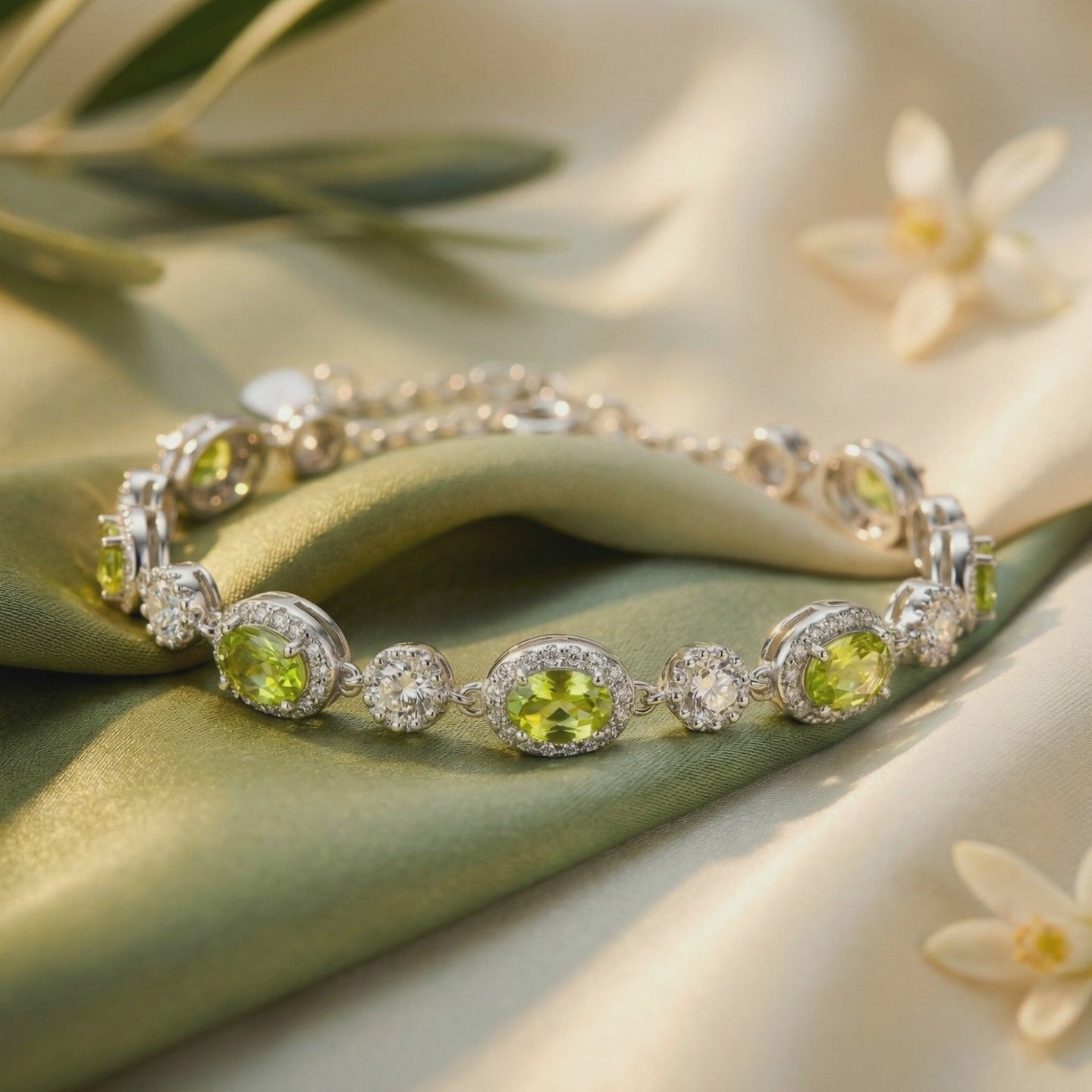 Wrap your wrist in the unapologetic vitality of the sun. This exquisite bracelet features seven certified Natural Peridot gemstones, each oval-cut to 6x8mm to maximize the legendary "Evening Emerald" luminosity. Known for its ability to glow even in low light, this bracelet is not just an accessory; it is a wearable connection to the earth's mantle, radiating a vibrant lime-green hue that symbolizes renewal and clarity.