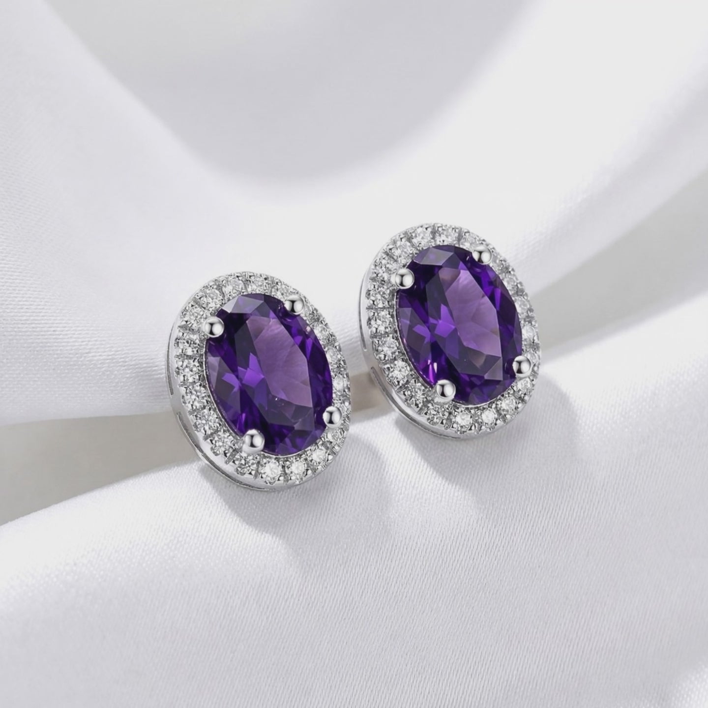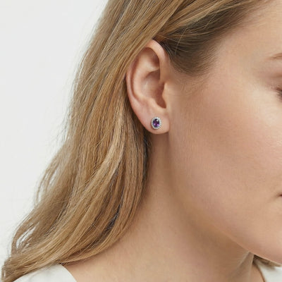 Mined amethysts often vary in saturation and clarity. These stud earrings feature Simulated Amethyst, color-calibrated to the absolute ideal of deep Royal Purple. Precision-cut for maximum fire and brilliance, matching the profile of museum-grade gems.