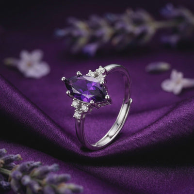 Designed as an accessible heirloom, this ring is forged in solid S925 Sterling Silver—never plated base metal—ensuring it remains a lasting treasure that won't turn your skin green. Flanked by six sparkling simulated diamond accents, the design elongates the finger while the adjustable band (US 5-10) guarantees a perfect fit every time. Whether as a meaningful February birthstone gift or a personal talisman, this piece arrives with a certificate of authenticity to verify its earth-mined origin.