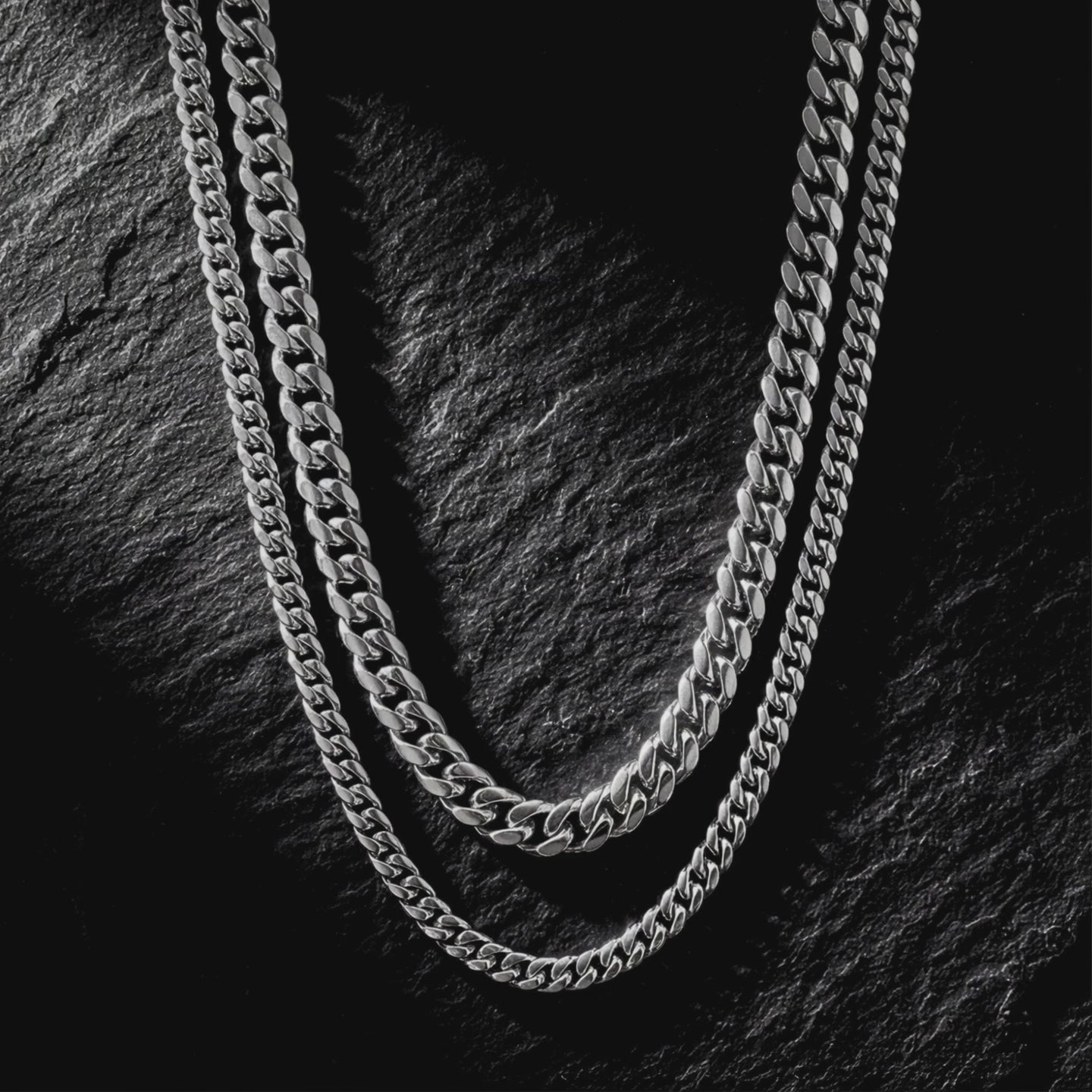 Double the style with The Cuban Duo. This matching necklace chain set delivers a stacked look, engineered from Swiss watch-grade steel. Waterproof, durable, and designed to turn heads without breaking the bank.