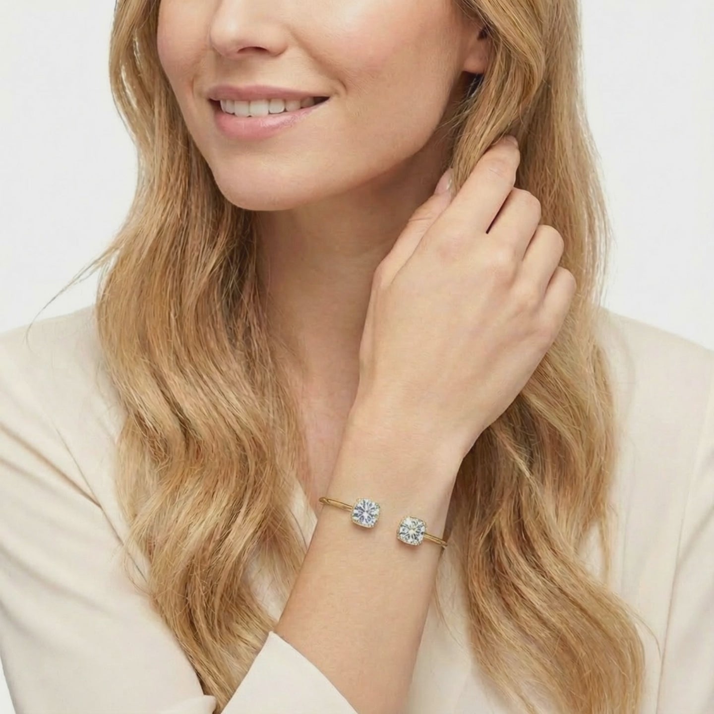We engineered the mounting for daily durability. Crafted from high-grade Stainless Steel with a gold-tone finish, this cuff is designed to resist tarnish and impact. It is jewelry built for the real world—low-profile, snag-resistant, and ready for 24/7 wear.