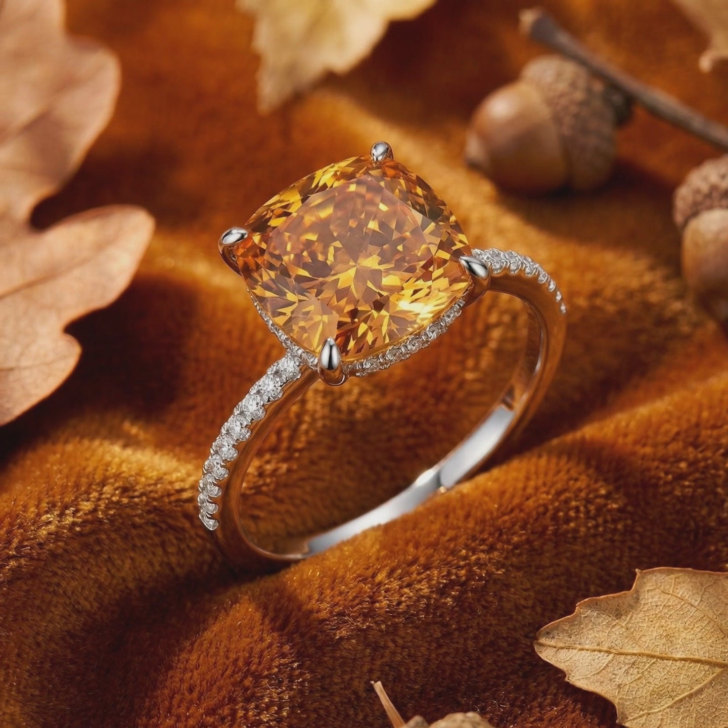 Mined topaz is notorious for uneven color and internal inclusions. This ring features Simulated Topaz, engineered to capture the ideal honeyed golden warmth of a museum-grade gemstone. Every stone is color-calibrated for maximum saturation and precision-cut into a cushion silhouette to ensure consistent light return and fire.