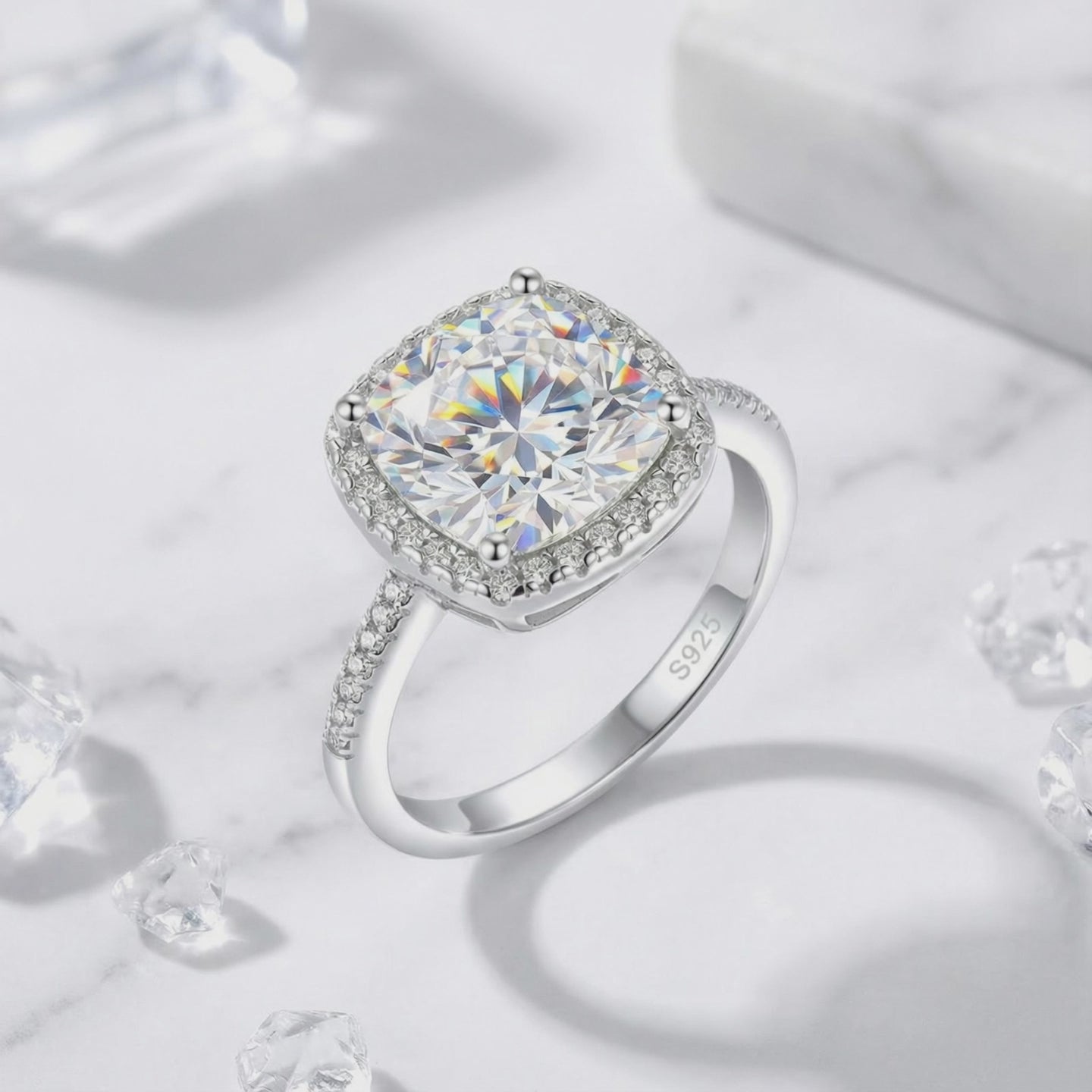 - Stone: 5A Grade Zirconia (Cushion Cut)