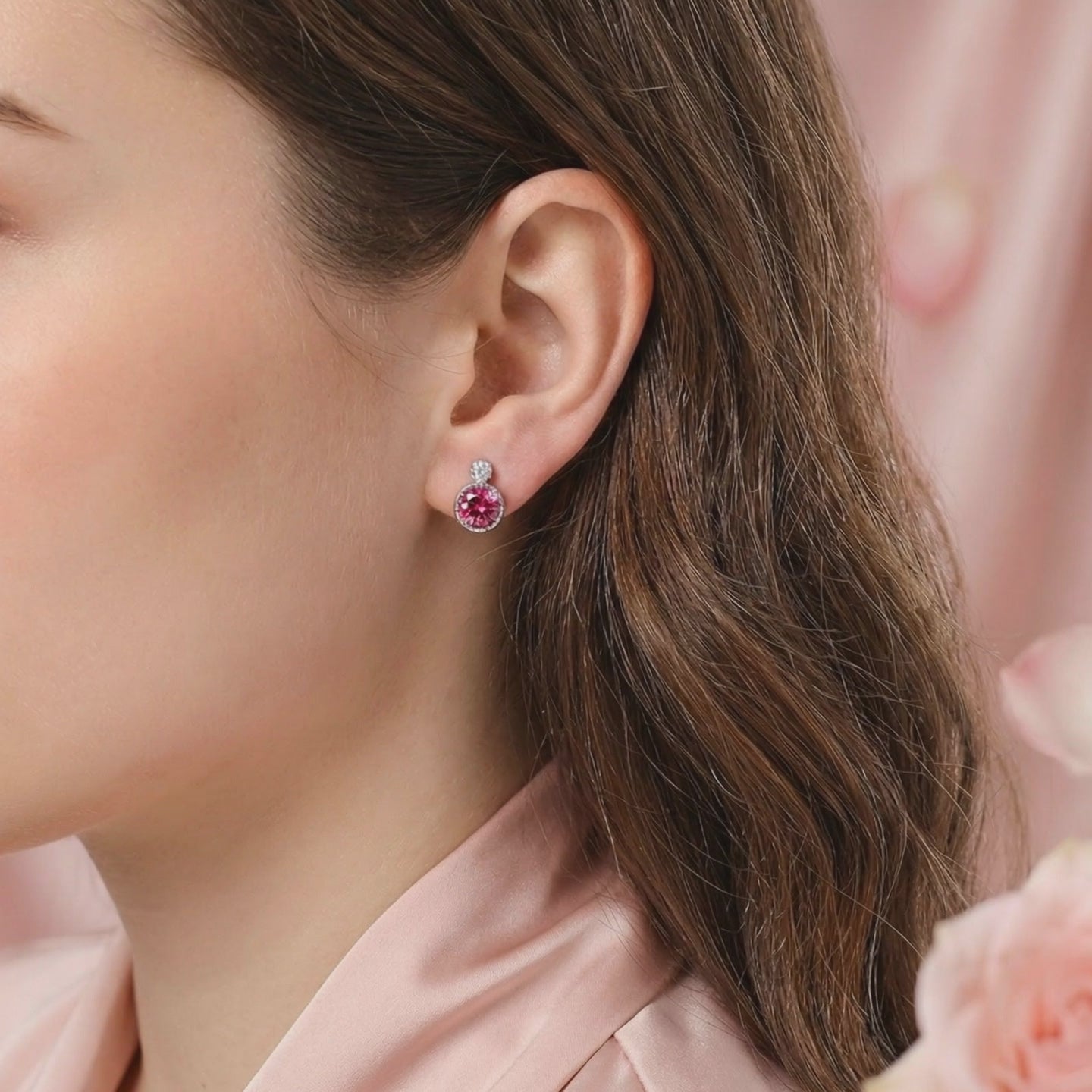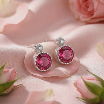 Mined tourmaline is often inconsistent, frequently showing muddy tones or internal inclusions. The Evianna Studs feature Simulated Pink Tourmaline, color-calibrated to achieve a vivid pink brilliance with warm raspberry undertones. These earrings provide the exact optical profile of museum-grade gemstones without the arbitrary mining markup.