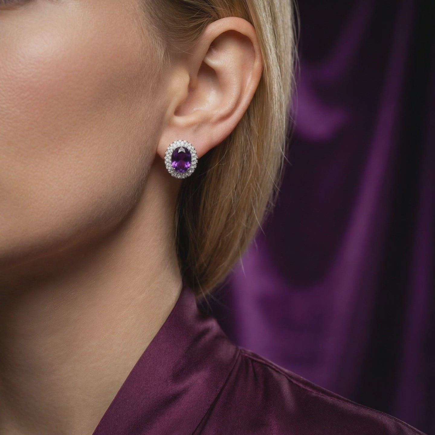 Command the room with the breathtaking presence of these drop earrings, featuring two massive 7-carat Natural Amethysts. Boasting a deep, saturated violet hue that rivals the finest Siberian gems, each stone is precision-faceted in a classic Oval Cut to eliminate windowing and maximize light return. The sheer scale of the 14-carat total weight creates a mesmerizing window into geological wonder, offering a level of brilliance rarely seen in standard jewelry.