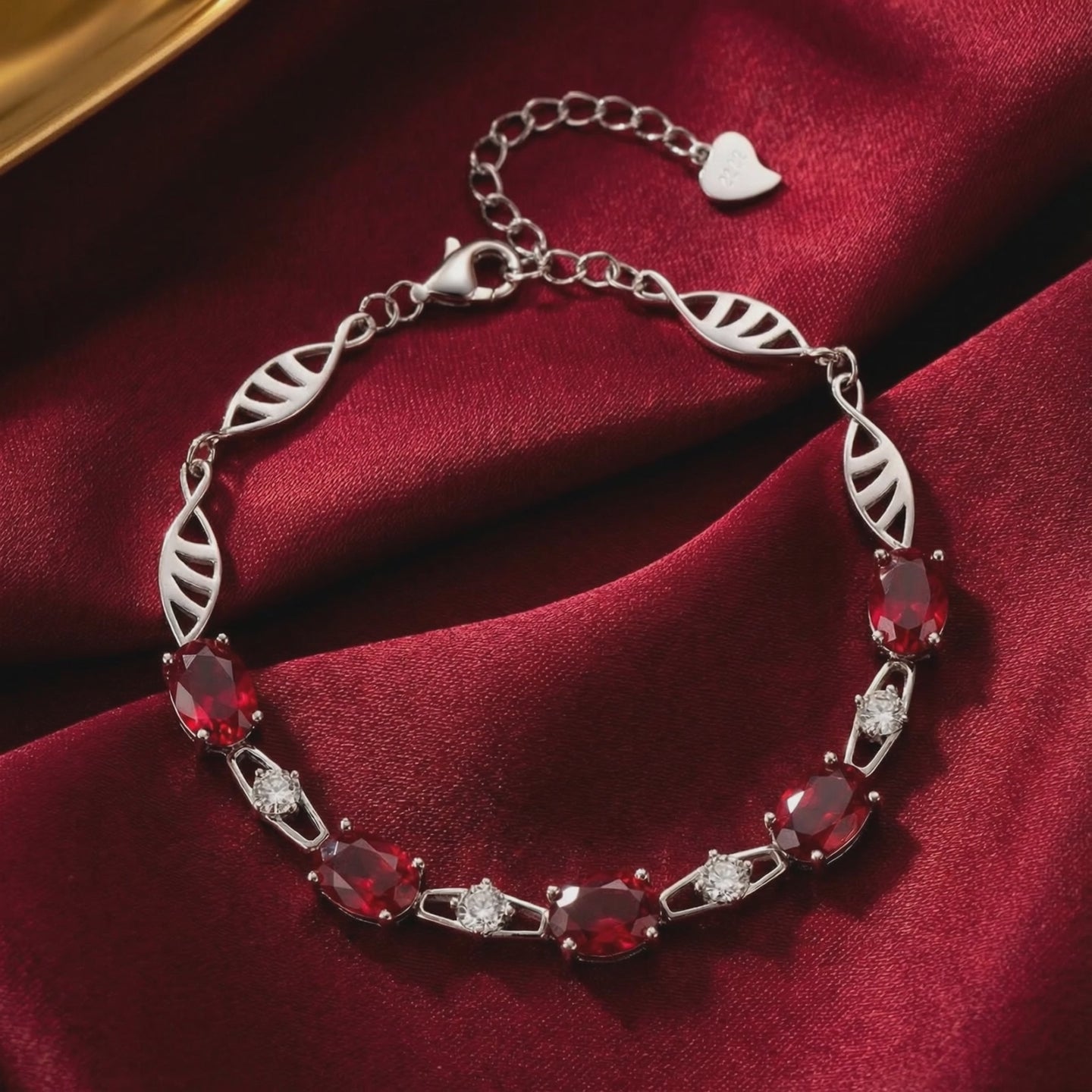 Mined rubies are often cloudy, brown, and inconsistently matched. This July birthstone bracelet features Simulated Ruby, engineered to match the coveted "Pigeon Blood" red benchmark. Each oval-cut stone is color-calibrated for maximum light return and flawless saturation, delivering the visual physics of a museum-grade heirloom without the scarcity tax.