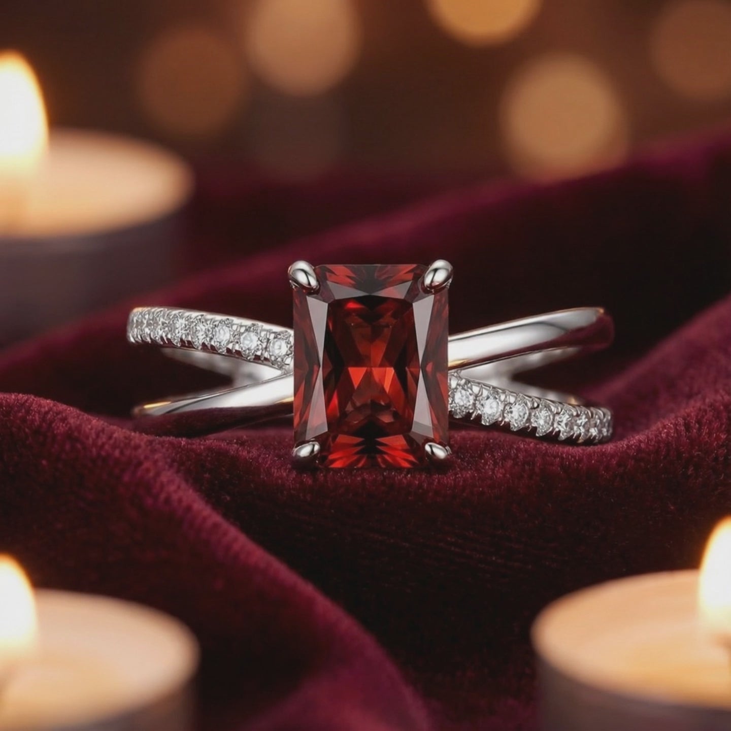 Mined garnets are frequently inconsistent, often leaning too brown or containing visible inclusions. This January Birthstone ring features a color-calibrated Simulated Garnet, engineered to achieve the absolute ideal deep red profile usually reserved for museum-grade specimens. Precision-cut in a radiant emerald shape, the stone is designed for maximum light return and optical fire.