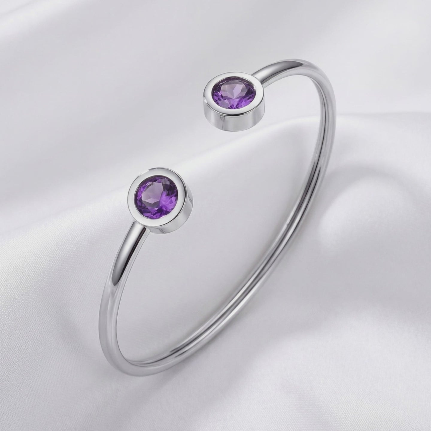 For the February born, we rejected the inconsistency of mined stones. We utilized A5 Grade material to eliminate the zoning often found in mined quartz with perfect Royal Purple saturation.
