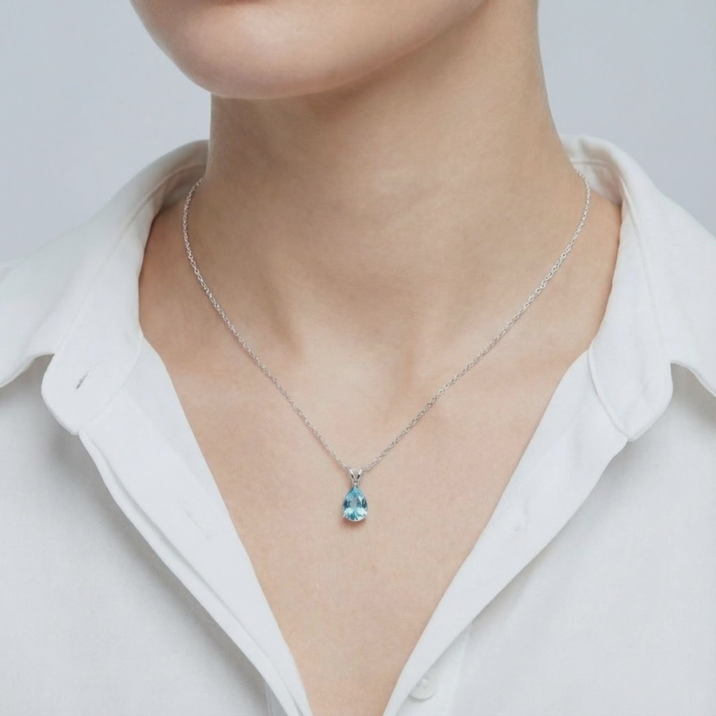 Nature rarely produces an Aquamarine with this level of clarity and deep saturation. This necklace features a precision-cut Simulated Aquamarine, engineered to match the icy, light blue hue of the finest museum-grade stones. It is the intelligent choice for those who demand the visual impact of a flawless 1.5-carat stone without the scarcity tax.