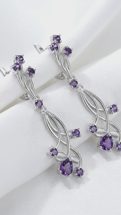 Mined amethysts often vary in color, ranging from pale lavender to uneven violet. We engineered The Lyriel Drops to match the museum-grade benchmark: deep, uniform Royal Purple. These earrings feature precision-cut Simulated Amethyst, color-calibrated to deliver the exact visual physics of the finest natural stones without the industry markup.