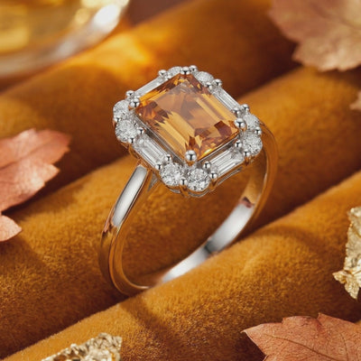 Mined topaz is frequently plagued by inclusions and inconsistent saturation. This ring features a Simulated Topaz, engineered to capture the ideal warm golden and orange hues with a deep honeyed warmth that nature rarely produces with such clarity. Precision-cut into a striking emerald shape, the stone is designed for maximum light return and visual physics that rival museum-grade heirlooms.