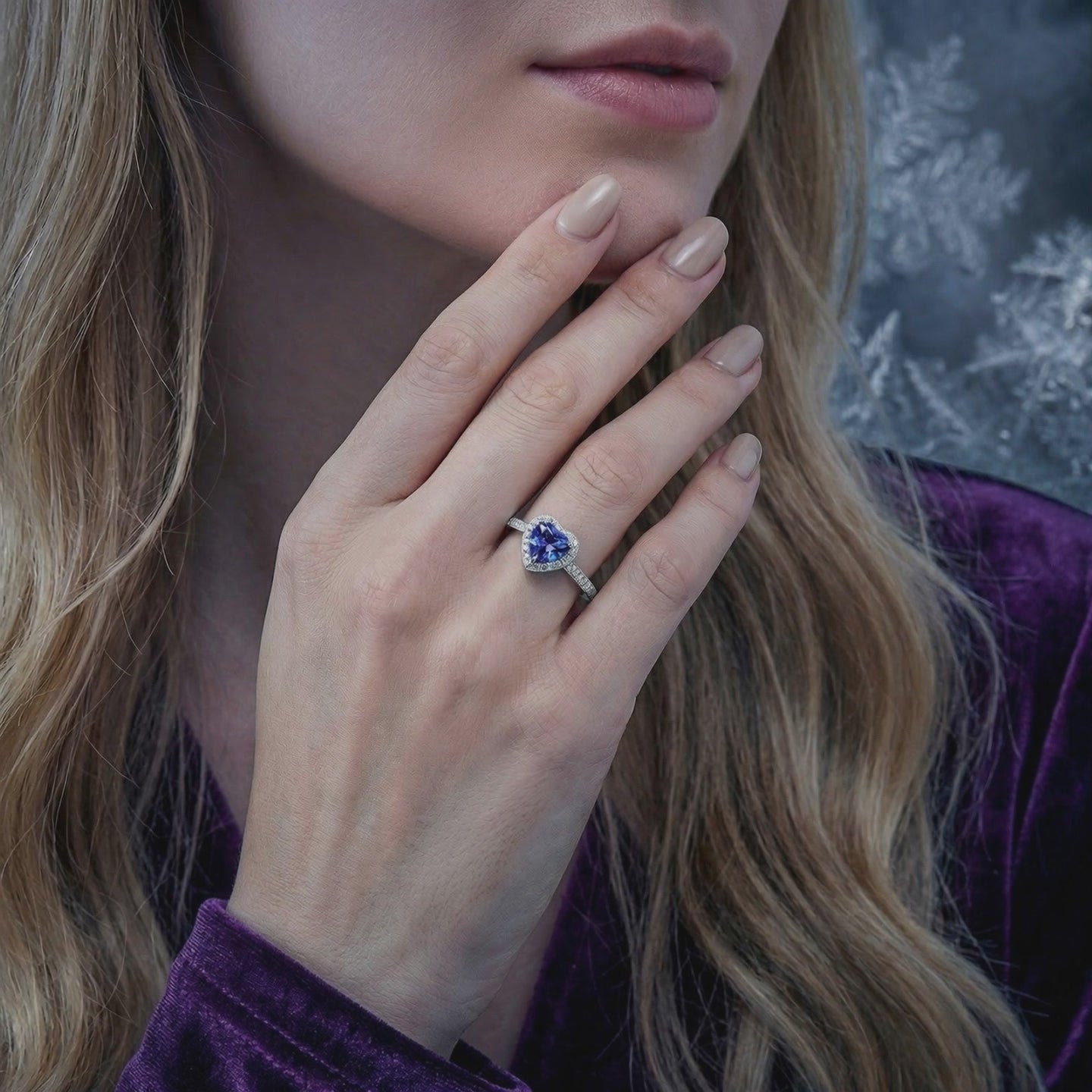 - Stone Type: A5 Grade Simulated Tanzanite (Precision-Cut Heart).