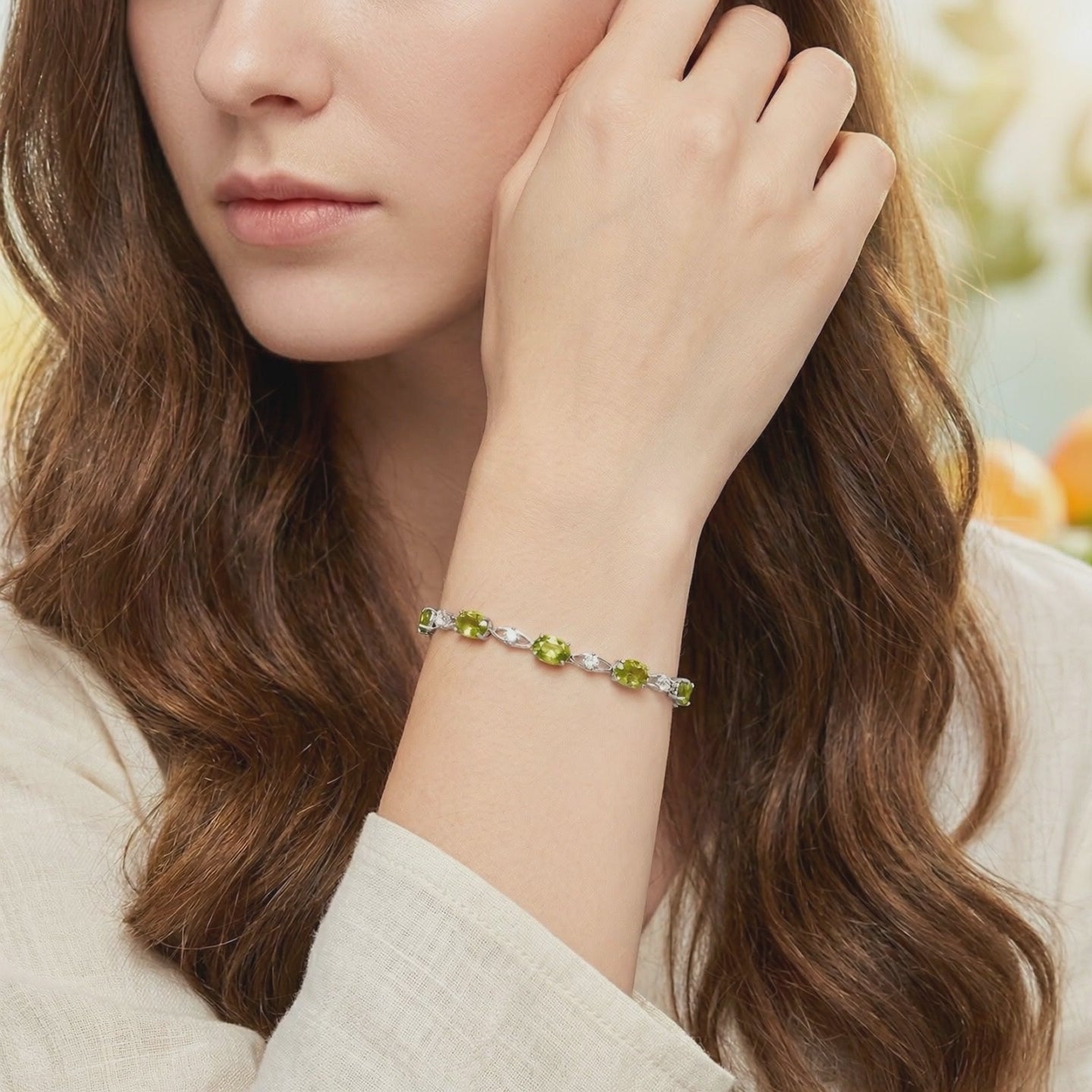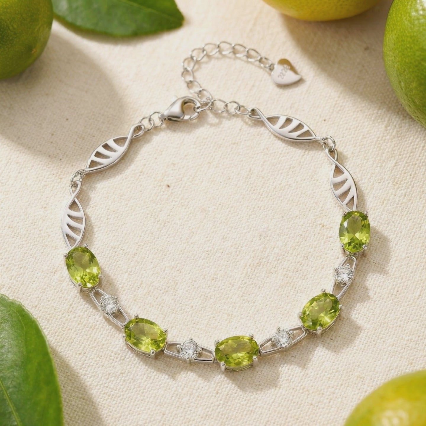 Mined peridot often carries cloudy inclusions or brownish undertones. This simulated peridot is color-calibrated to the absolute ideal: a vibrant yellow-green with lively brilliance and museum-grade clarity. Each oval stone is precision-cut from A5-grade material to maximize light return, ensuring this bracelet maintains its fire in any lighting.