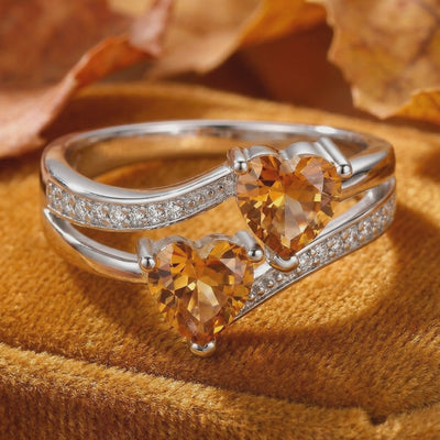 Mined topaz stones are frequently cloudy or pale. This ring features two heart-cut Simulated Topaz stones, engineered to match the coveted "Honeyed Gold" saturation of museum-grade gems. We precision-cut these stones from A5 Grade material to guarantee flawless clarity and maximum light dispersion in every facet.