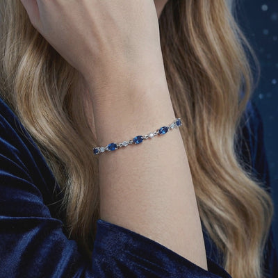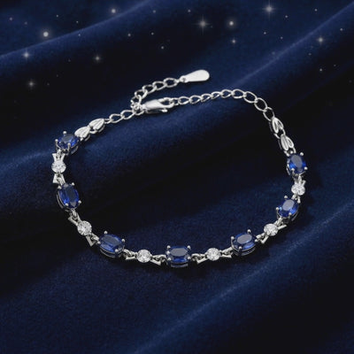 Mined sapphires often arrive cloudy or with visible color zoning. We engineered the inconsistency out of the equation. This tennis bracelet features precision-cut Simulated Sapphires, color-calibrated to match the deep royal blue sapphire with velvety saturation found in heritage museum pieces. Each stone is faceted to maximize the visual fire across every link, ensuring high-performance brilliance that never dims.