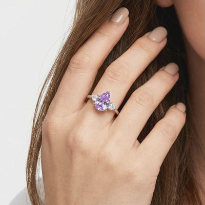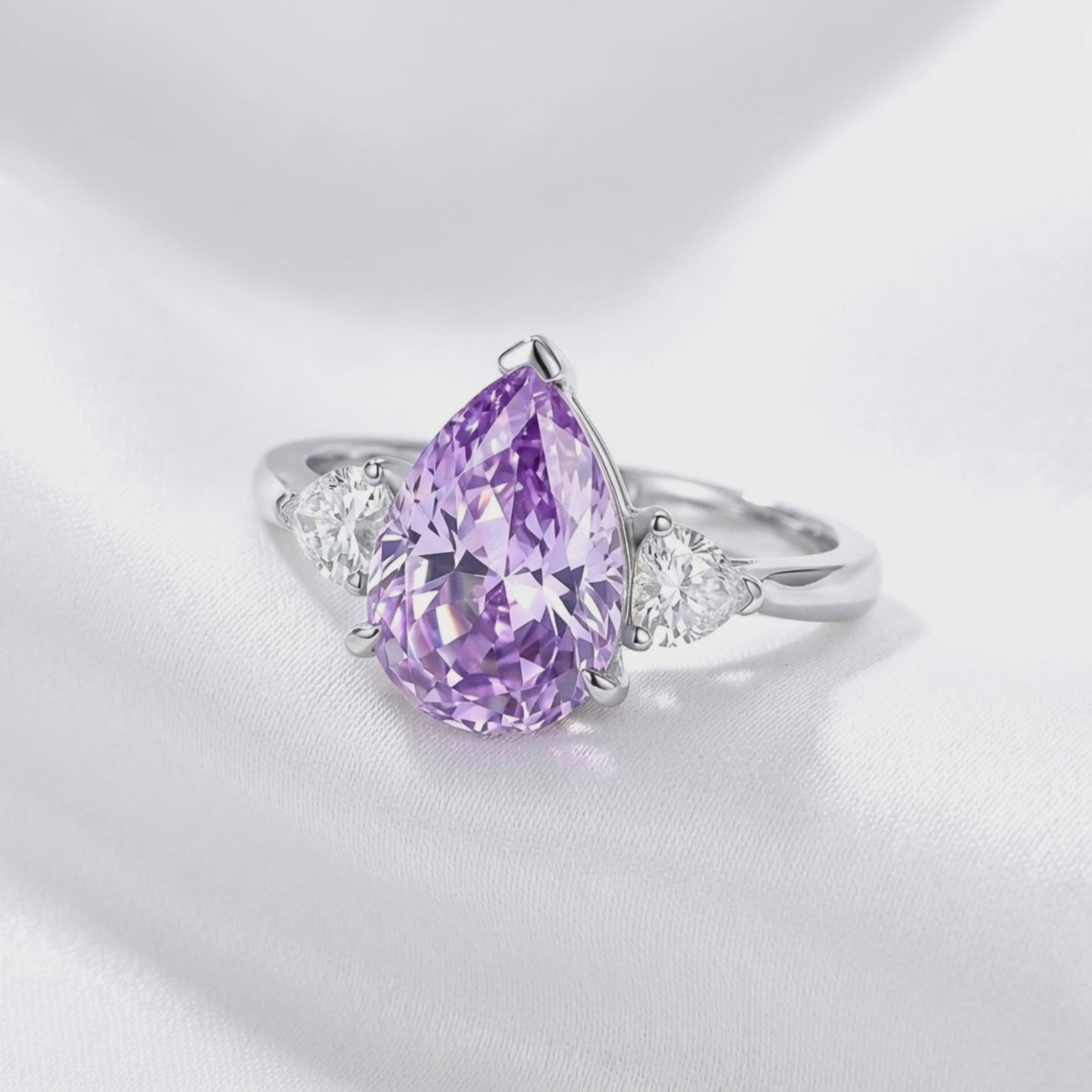 Mined amethysts often feature uneven color saturation and visible inclusions. This is Simulated Amethyst, engineered to achieve the absolute ideal "Royal Purple" benchmark. Precision-cut in a pear silhouette for maximum light return, this ring delivers museum-grade visual physics without the scarcity tax.