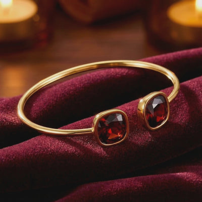 Mined garnets are frequently dark, cloudy, or inconsistent in color. We engineered the Simulated Garnet in this bracelet to match the ideal "Bohemian Red" benchmark—offering flawless saturation and VVS-grade clarity that nature rarely delivers. Each stone is precision-cut into a square cushion to maximize light refraction and fire.