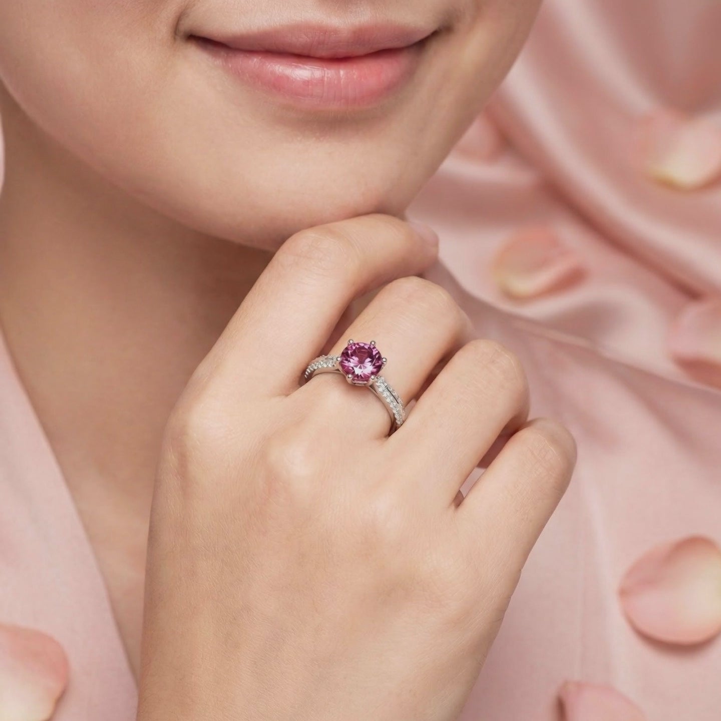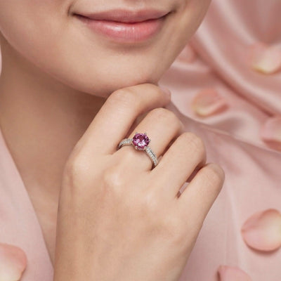 Mined tourmalines are frequently clouded by inclusions that disrupt light return and dull the stone's natural fire. We engineered this ring to replicate the top 1% of October birthstones, featuring a Simulated Pink Tourmaline with deep raspberry saturation and flawless VVS-grade clarity that nature rarely achieves consistently.