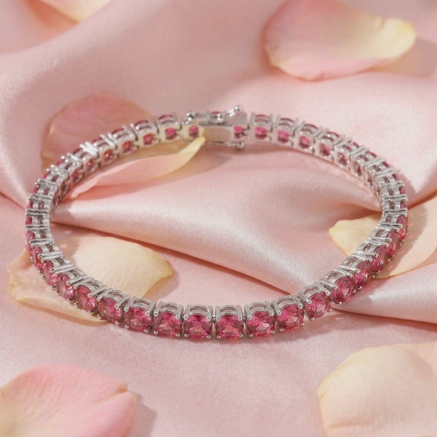 Nature is random, but engineering is precise. Mined pink tourmalines often vary in shade and clarity, making a uniform tennis bracelet nearly impossible to find without a massive markup. We engineered the uniformity. This October birthstone bracelet features precision-cut stones color-calibrated to a vivid raspberry pink with exceptional clarity.