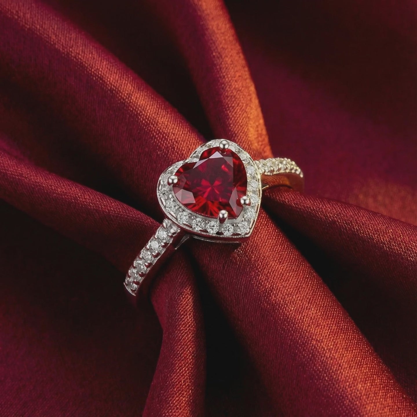 Nature rarely delivers the perfect ruby. Mined stones are often cloudy, fractured, or lean toward a dull brown. We engineered the solution. This July birthstone ring features a precision-cut heart-shaped Simulated Ruby, color-calibrated to the prestigious "Pigeon Blood" red benchmark. It offers the flawless saturation and VVS-grade clarity that nature intended, without the six-figure price tag.