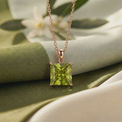 - Gemstone: Certified Natural Peridot (6mm Princess Cut)
