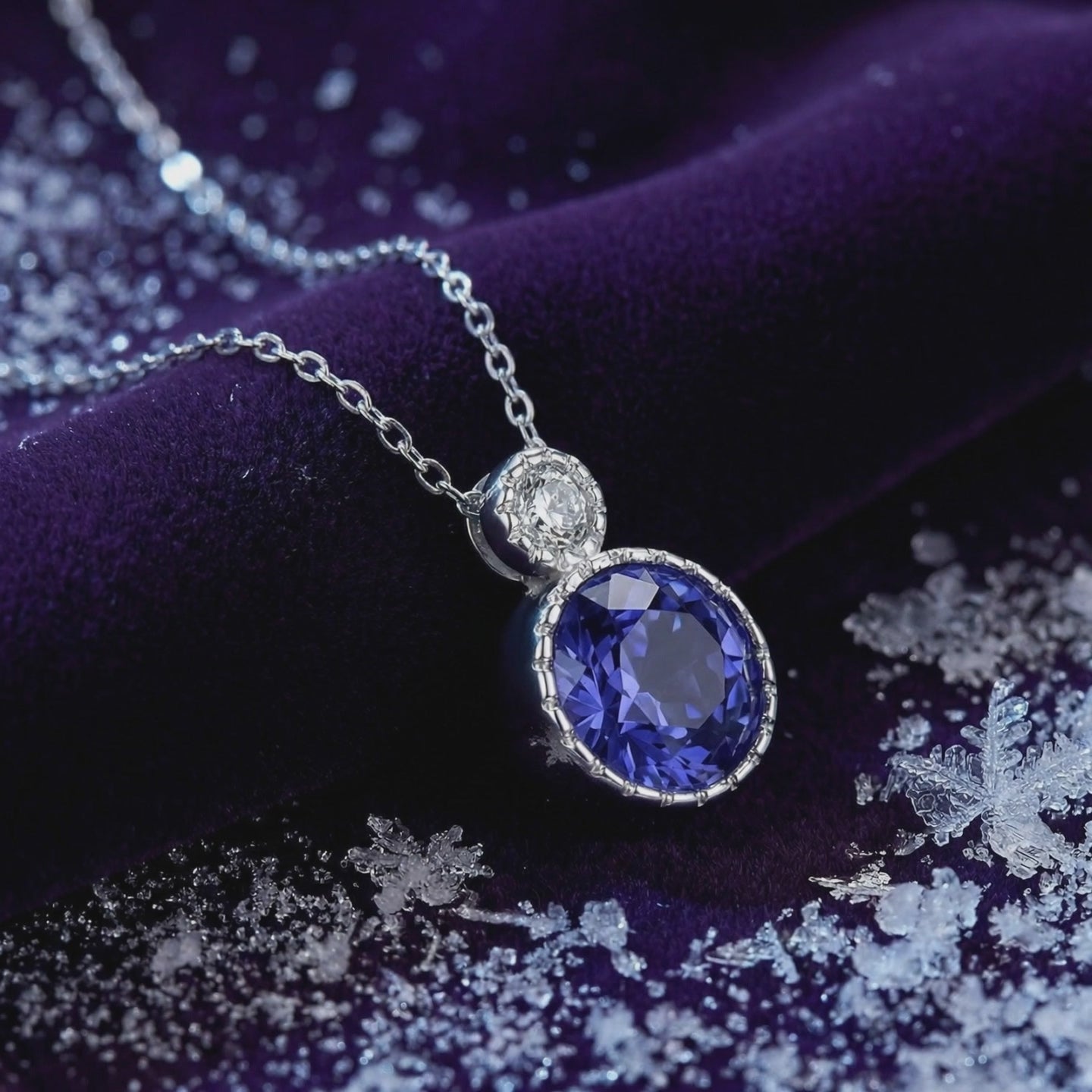 Nature rarely delivers the perfect hue consistently. Mined tanzanite often lacks the intense depth required for heirloom-quality jewelry. Our Simulated Tanzanite is engineered to replicate the coveted deep blue-violet profile with trichroic shifting tones. This necklace features a precision-cut round center stone calibrated for maximum light return and optical supremacy.