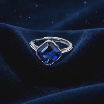 Mined sapphires are often riddled with inclusions or uneven color zones that dull their natural fire. We engineered the solution. This September birthstone ring features a precision-cut 8x8mm Simulated Sapphire, color-calibrated to match the deep, velvety royal blue of a museum-grade treasure. The cushion-inspired cut maximizes light return, ensuring a brilliant display from every angle.