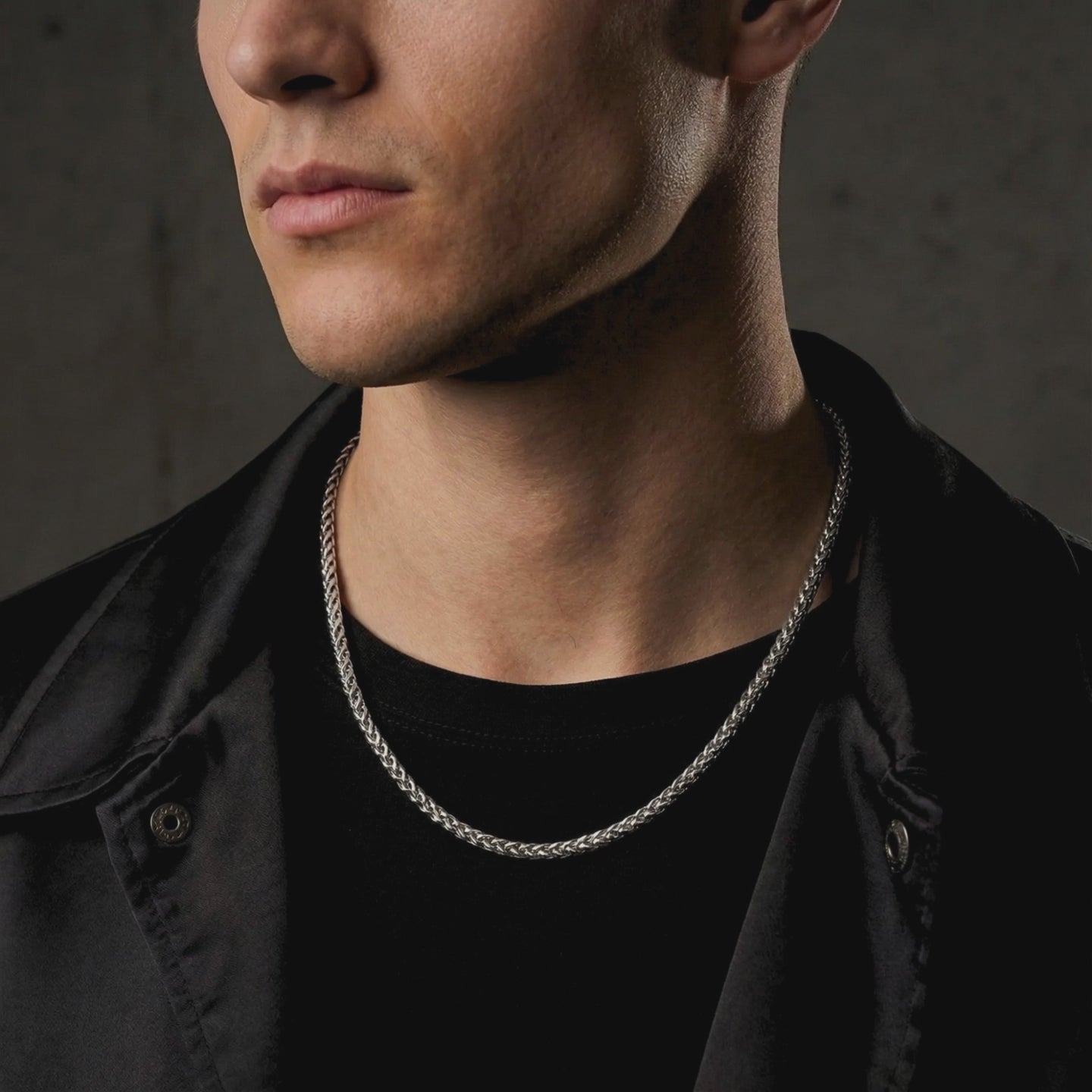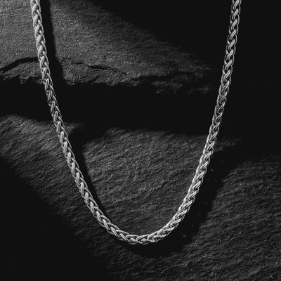 This Wheat Chain necklace is a timeless piece, engineered for daily wear. Crafted from Swiss Watch Grade steel, it's built to outlast trends and maintain its shine. Wear it alone or layer it with other chains for a personalized stack.